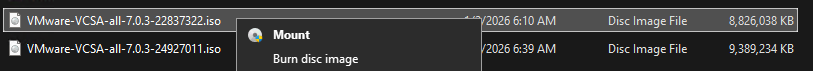 Begin by navigating to the folder containing your VCSA ISO. Right-click the file and select Mount.