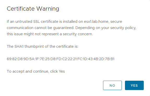 Certificate Verification: You will be prompted to verify the host’s SSL thumbprint. Confirm it is the correct host and select Yes.