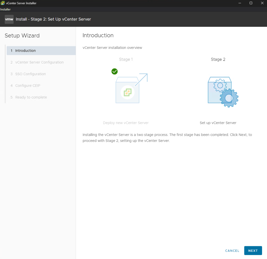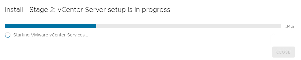 A progress window will track the final setup of the vCenter services.