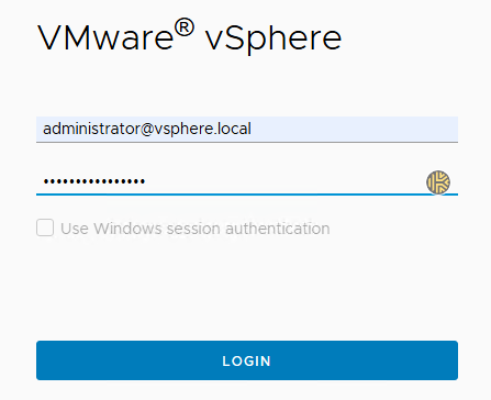 Login: Use the administrator@vsphere.local account and the password you created in Stage 2.